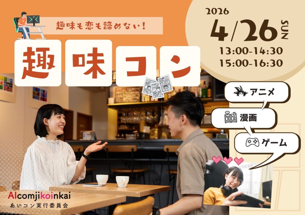 この婚活イベントは、ゲーム・アニメ・漫画といった趣味をきっかけに、自然に会話が盛り上がる特別な出会いの場です。